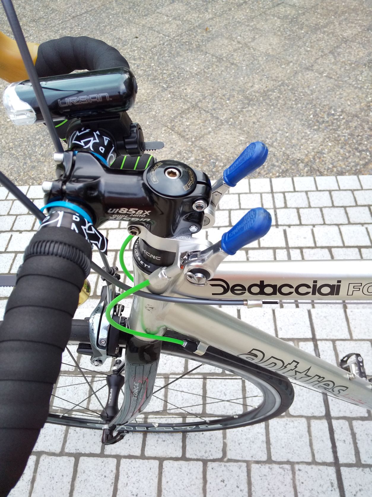 ベース車は2005年頃の、アルミフレーム+カーボンバック+カーボンフォーク仕様です。部品はホイールとサドル以外は手持ちの部品と交換しました。結果、シマノ、吉貝、ニットー等新旧&メーカー混載になっています。