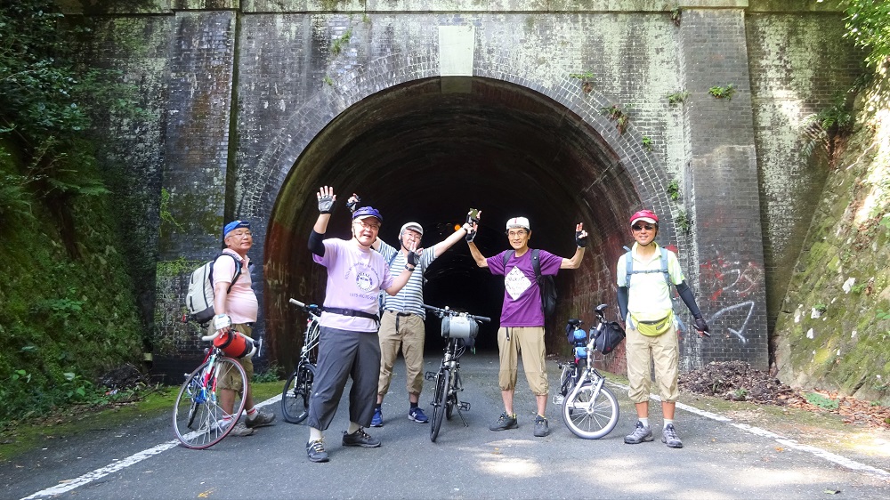 本坂峠(328m)は前述の象や天璋院篤姫も1853年に越えている。さあ、我々もと行きたかったのだが細い山道のオフロードでは如何ともし難い。しかし、本坂峠の約40m下には1915年に竣工した本坂隧道(旧本坂トンネル)が通っている。長さ214m、高さ4.5m、幅5mの煉瓦造りでとても良い雰囲気だ!ここでは自転車をゆっくりと押してトンネルによる県越えをした。